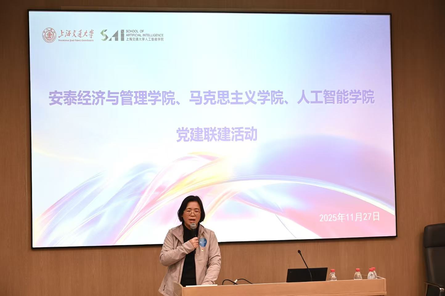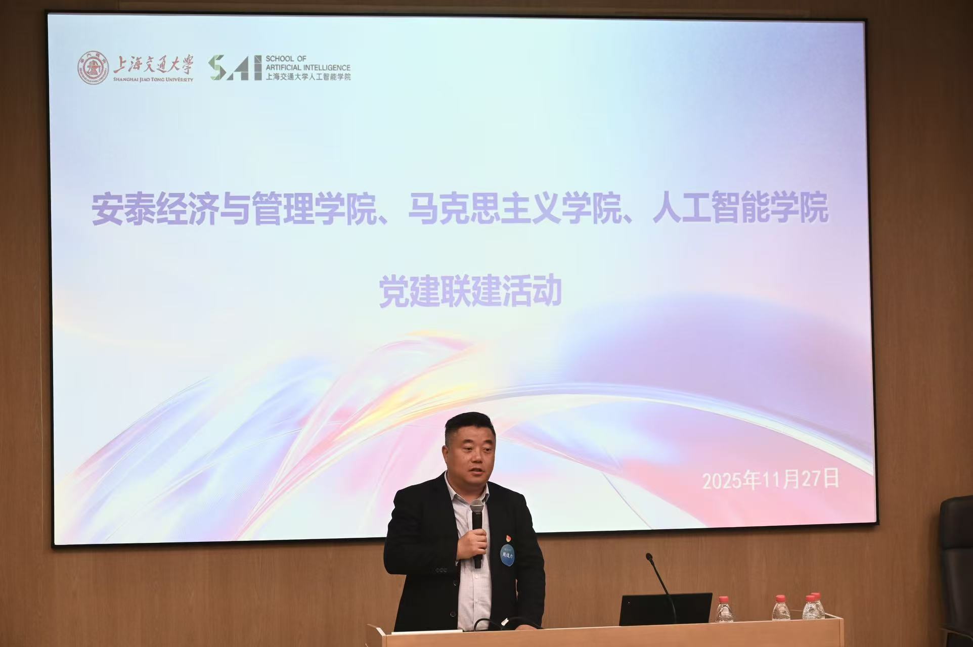 11月27日,安泰经济与管理学院、马克思主义学院、人工智能学院三院党建联建活动在徐汇校区人工智能学院502会议室成功举办。安泰经济与管理学院党委副书记、纪委书记殷洁,EMBA中心主任周道力,办学中心党支部书记徐洁;马克思主义学院副院长魏华,思想道德与法治教研室党支部书记贾微晓;人工智能学院党委书记杨一帆,院长助理严骏驰,智能体研究青年科学家钱忱及各学院教师代表出席会议,会议由杨一帆主持。